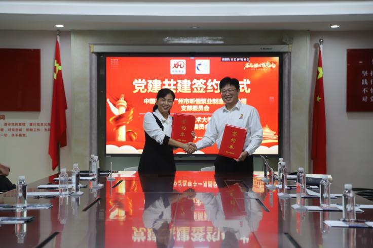 活动开始后,双方一同观看了昕恒泵业的企业宣传片和昕恒之歌,全面了解了昕恒在水泵制造领域的成就以及党建工作的成果。罗先荣书记对生命健康学院党总支一行的到来表示欢迎,介绍了公司党支部的建设情况,并强调此次“党建共建”是企业党建工作提质增效的重要契机,也是深化校企合作的新起点。周爱芳书记对昕恒在党建引领下取得的成绩给予高度评价,指出“党建共建”模式为校企双方搭建了深度融合的平台。随后,罗先荣与周爱芳共同签署了“党建共建”合作协议,并为共建基地揭牌,正式确立了双方的共建关系。